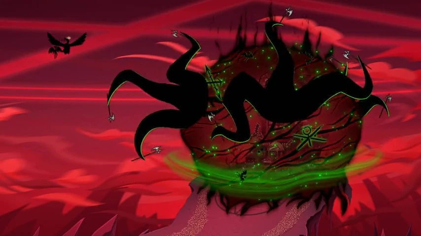 In another dimension, a green portal is torn. Black Hell emerges.