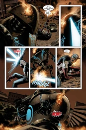 Wiz: However after his grandson's death the old Commander took up his position as a fighter and eventually died fighting the villain Eclispo in battle when he triggered an explosion killing the both of them
