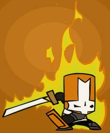 All Castle Crashers charge at each other. Orange Knight goes against Green, while Blue goes against Red. Orange engulfs his axe in flames, then slashes Green, who dodges and tries to hit Orange, who uses his shield.