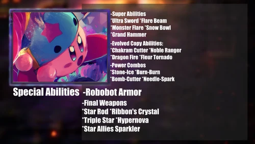 Wiz: Kirby's Ultimate powerup is Hypernova Kirby capable of devouring entire planets which is summoned by Kirby consuming a Miracle Fruit once in this form no one is safe from Kirby and by eating his Own Wrap Star Kirby creates the Star rod a weapon capable of destroying powerful beings