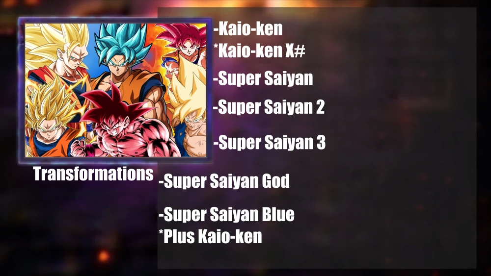 Wiz: Goku can also produce the Dragon fist an attack with a Dragon like fist that can sometimes go right through an opponent if he wants to , Goku also has a variety of Transformations known as the Super Saiyan transformations.