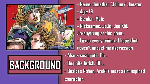 Ukyo: Enter Johnny Joestar, a youth with a legendary history that was left paralyzed after a gunshot to his back from an enraged citizen- leaving him to be bed-ridden for years.