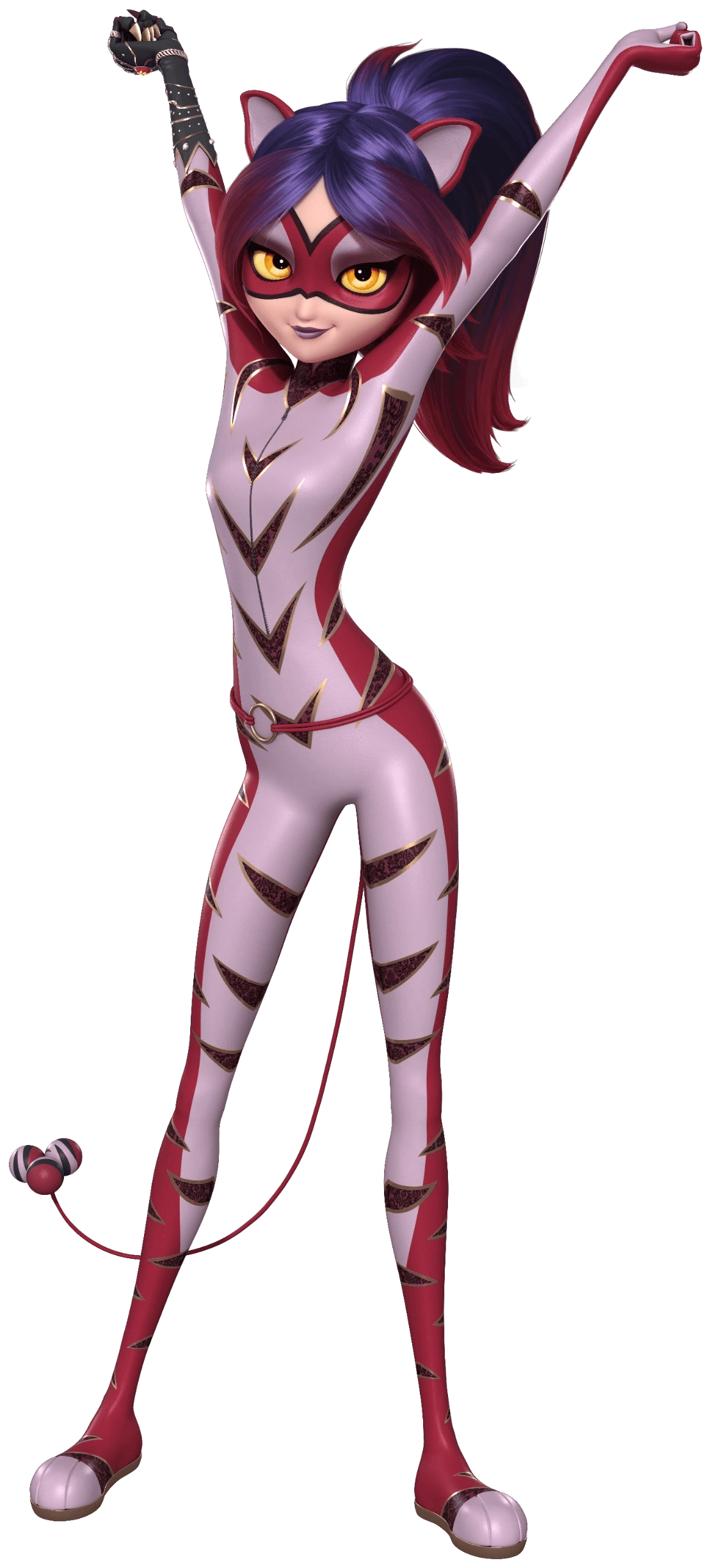 With the Tiger Miraculous, Juleka is able to turn into Purple Tigress, possessing enhanced skills such as strength, speed, agility and near-invulnerability.