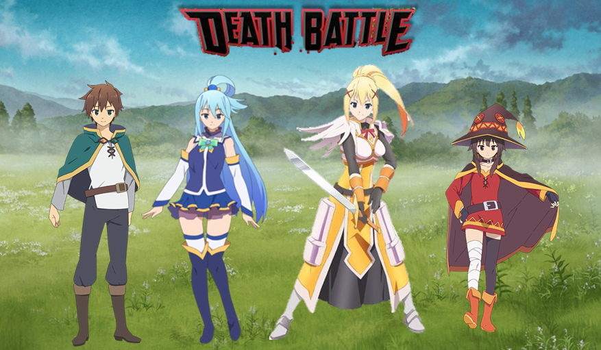 Kono Subarashii Sekai ni Shukufuku Wo! Battle Royale is a What-If? Death Battle created by 5555thExplosionMage. This fight features the four protagonists of KONOSUBA Satou Kazuma, Aqua, Darkness, and Megumin in a battle to the death.