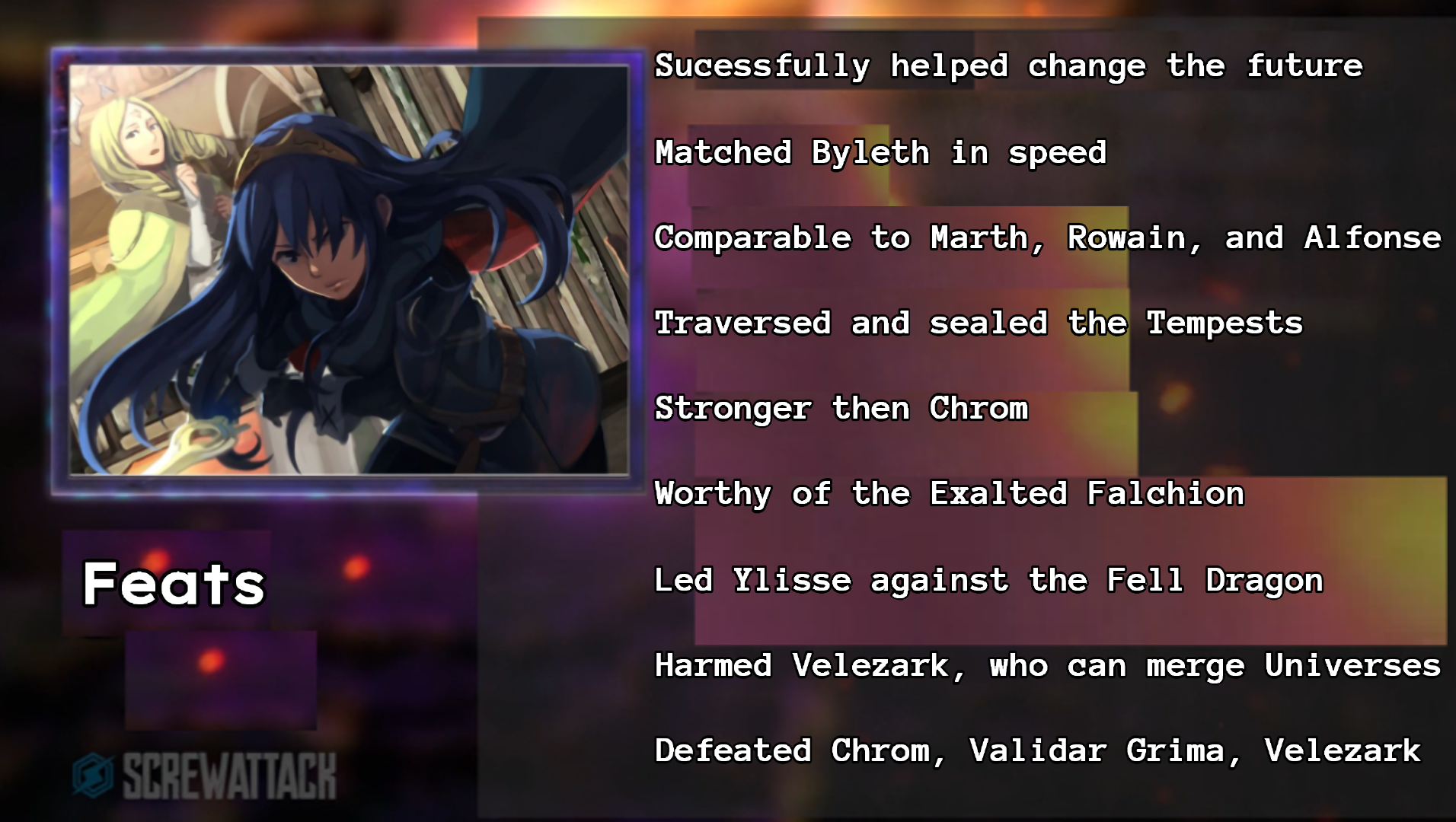 MegaSonic: Unfortunately, Fire Emblem Heroes is not Fate/Grand Order. While Heroes does give Lucina scaling to Byleth, who can dodge attacks over forty times the speed of light, it’s still nothing compared to Crono’s speed, meaning that Crono didn’t need to able to outfight Lucina’s skill when he could just rush her as speeds she could never react too.