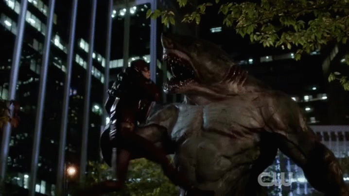 o Boomstick: Ahhh! Once he got to Earth 1, it didn’t long for this fish man to become one of the Flash’s most dangerous new foes. And for good reason too, because Shay's new personality as a human-shark hybrid made him want to dine on some fine human meat, courtesy of whatever sap crossed his path.