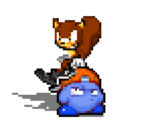 Zerita tossed her shiruken, but Bolt dodged it. He threw his acorn, which hit Zerita in the forehead. The humanoid cat growled, and lunged at Bolt, claws extended. Bolt swung his tail at Zerita, blocking the attack. He then back kicked her.